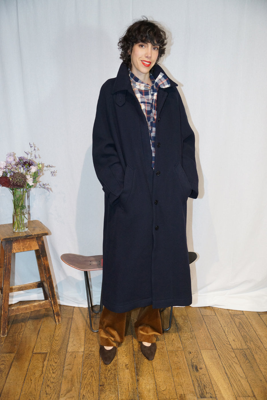 Manteau AVEDON Belle Pièce long en laine, manches longues, boutonnage caché sur le devant et poches devant