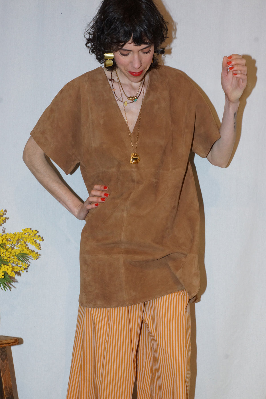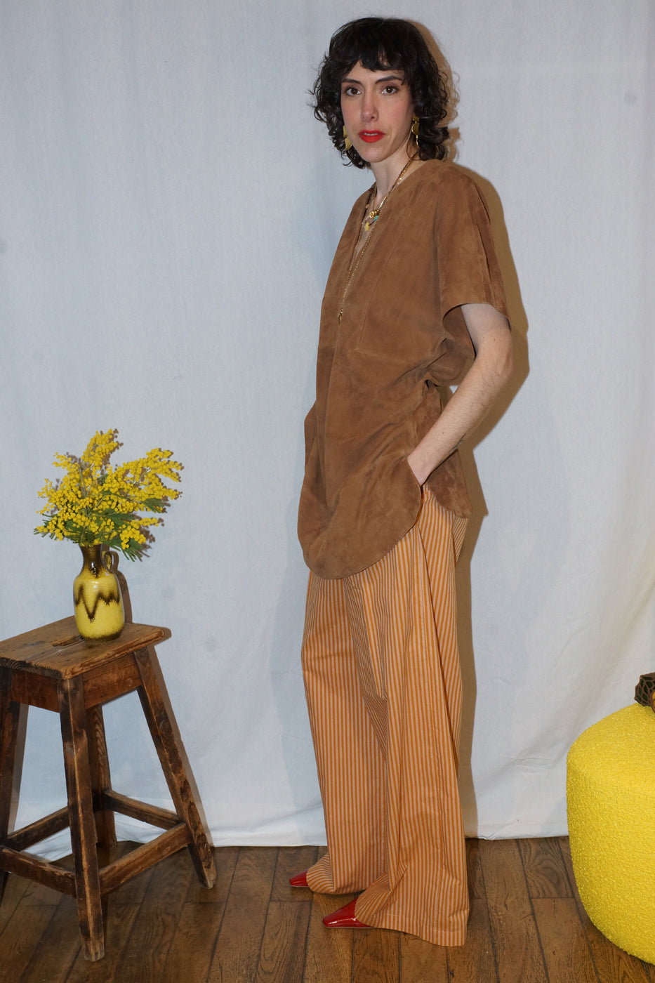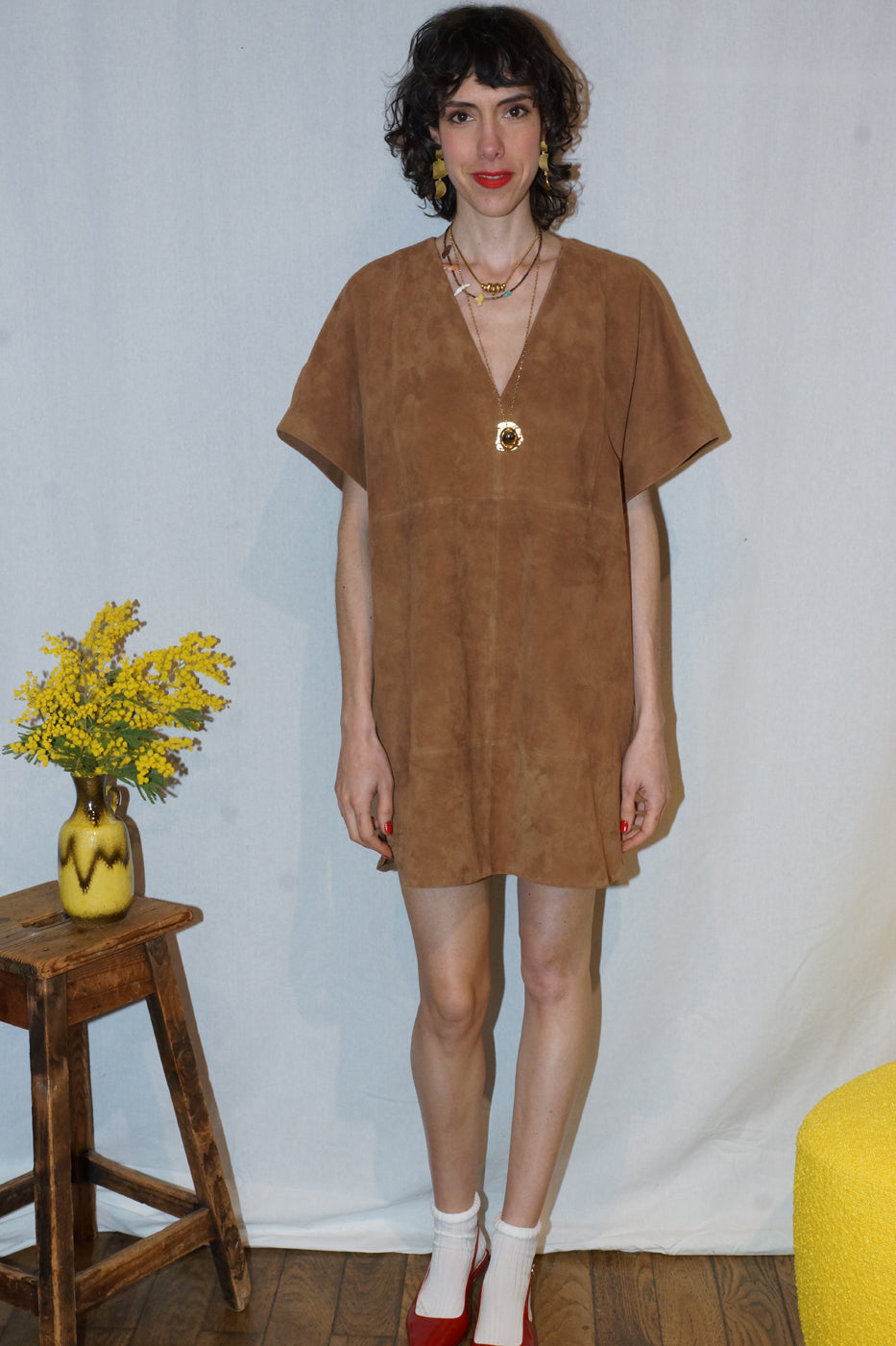 Note : Coup de cœur pour le thème daim de Belle Pièce : et cette robe se mixe à l’envie — sur un pantalon fluide ou en solo, jambes nues avec des sandales plates — pour un look canon !